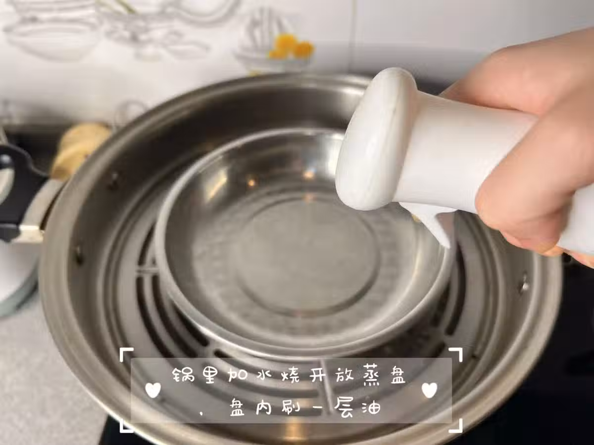 2⃣️可以準備兩個大小一致的杯子,先將每層要倒入的漿量好(如圖)這樣蒸的時候直接往盤裡倒入,不用顧忌每層量多或少。