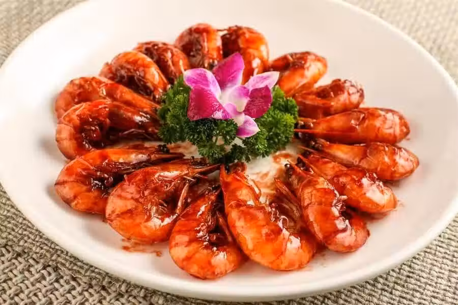 用到:大蝦、姜蒜、白糖、醋、生抽、老抽、料酒、食用油
