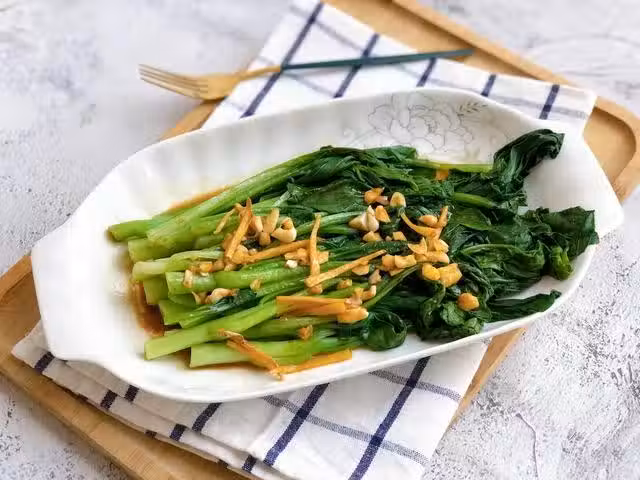 1、我們先選擇鮮嫩的菜心,將其清洗乾淨,鍋中水煮沸後,將菜心下鍋焯燙,焯燙的時候可以加點鹽和食用油,可以減少菜心在水煮過程中營養流失,同時食用油又能使菜心顏色更加翠綠鮮嫩不發黑。