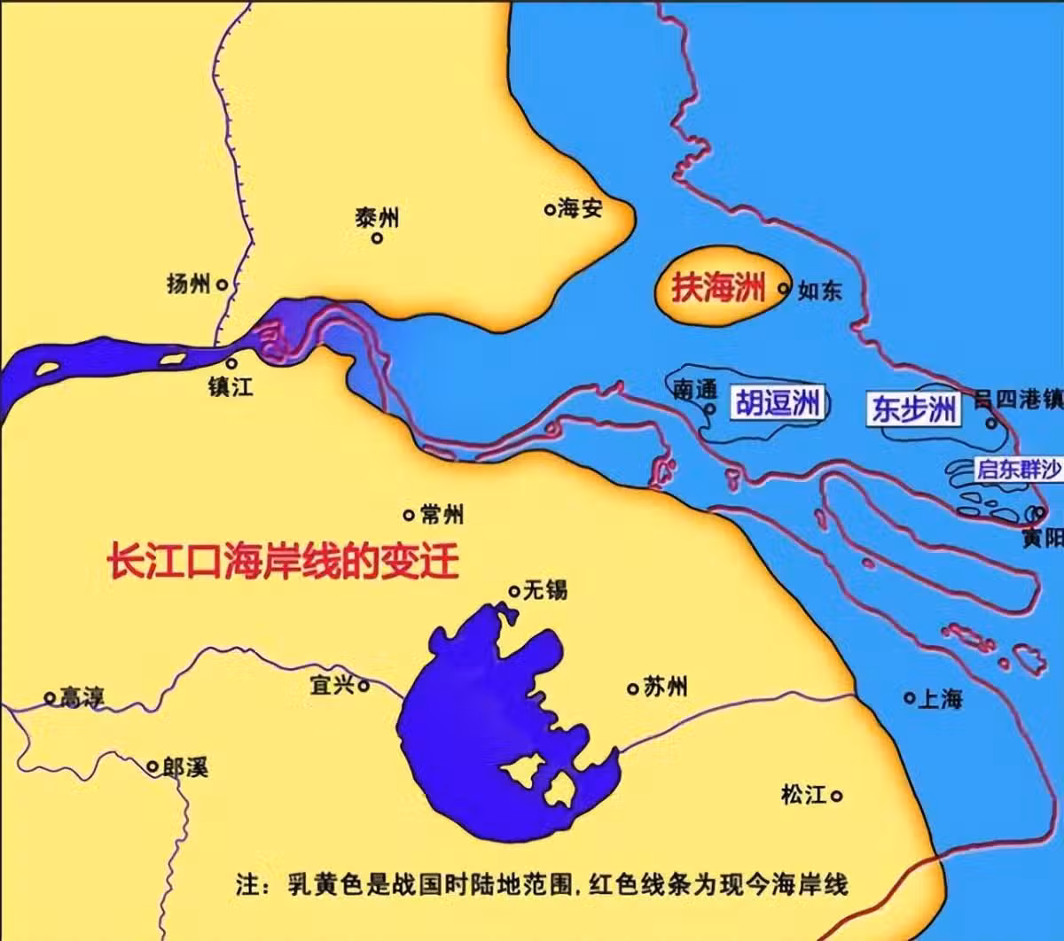 唐朝之後,長江主流改道,使得長江南岸的泥沙淤積減少,上海的海岸線得以穩定下來。而北岸的淤泥,則加速了南通和崇明島的形成。