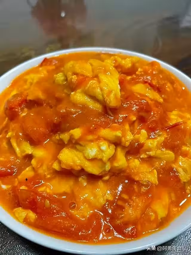 5、鍋內留底油,倒入番茄塊加入一勺鹽,中小火炒至番茄變軟出汁.