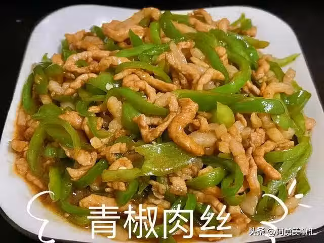 2、青椒洗凈去蒂,切成和肉絲一樣粗細的絲