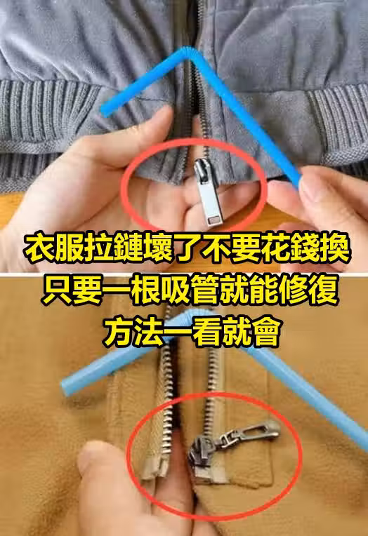 衣服拉鏈壞了不要花錢換,只要一根吸管就能修復,方法一看就會