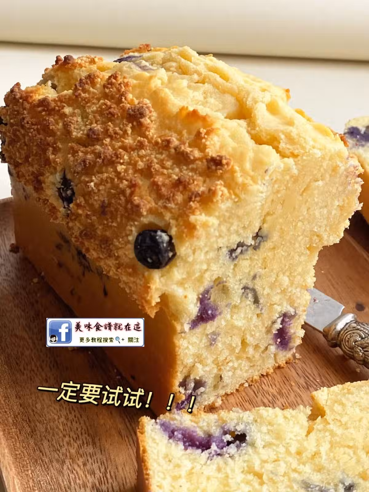 ▪️麵糊倒入蛋糕磨具中,表面撒上酥粒,再來幾個藍莓點綴一下