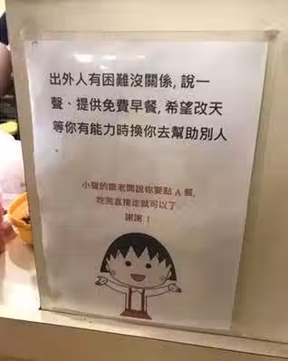 攏系甘苦人!早餐店老闆「推出免費A餐」公告:有困難就來吃, 網友發現「底下多了一行字」瞬間被暖哭!