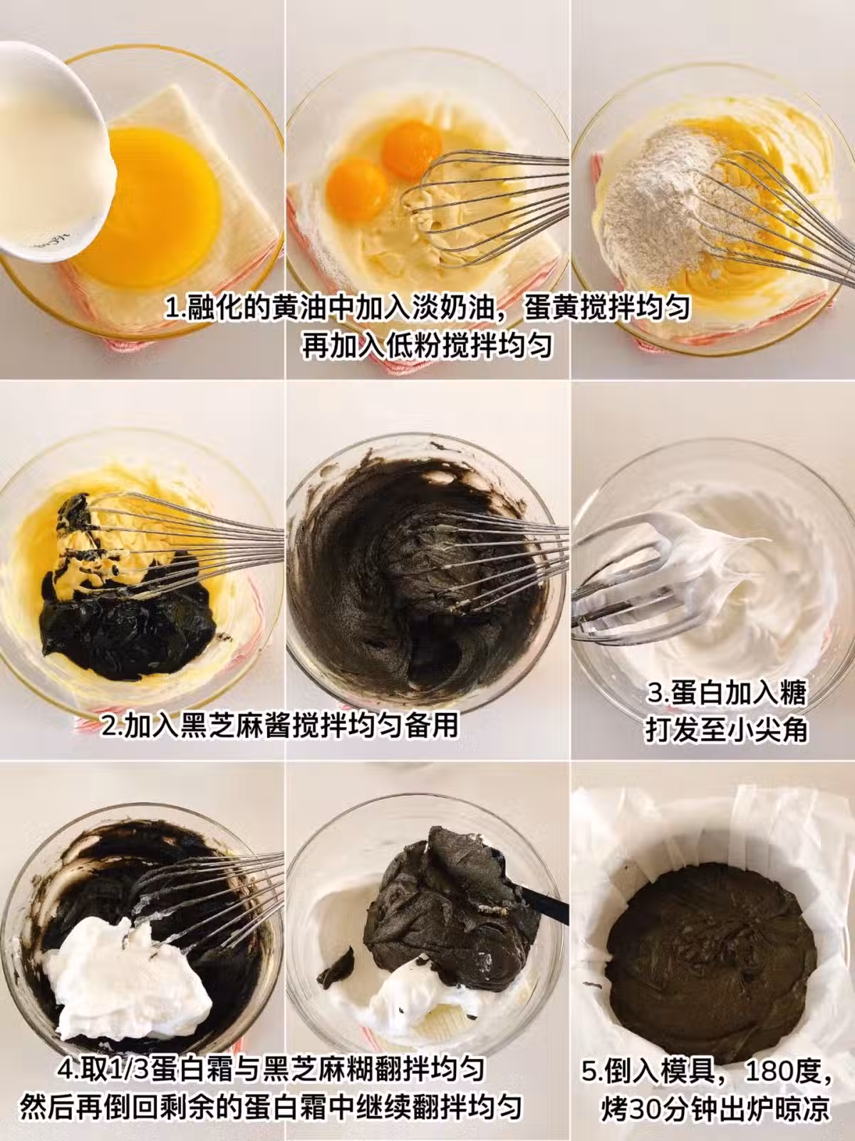 2️⃣加入低粉和黑芝麻醬攪拌均勻備用