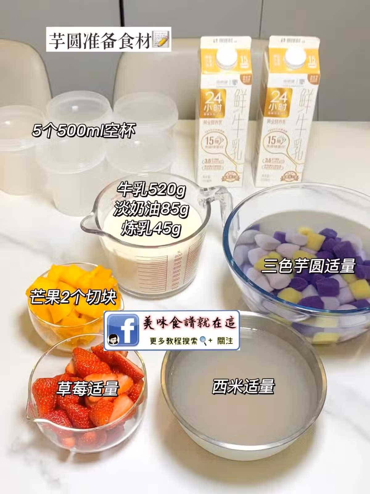 【配料】芒果2個 草莓/西米/爆爆珠適量