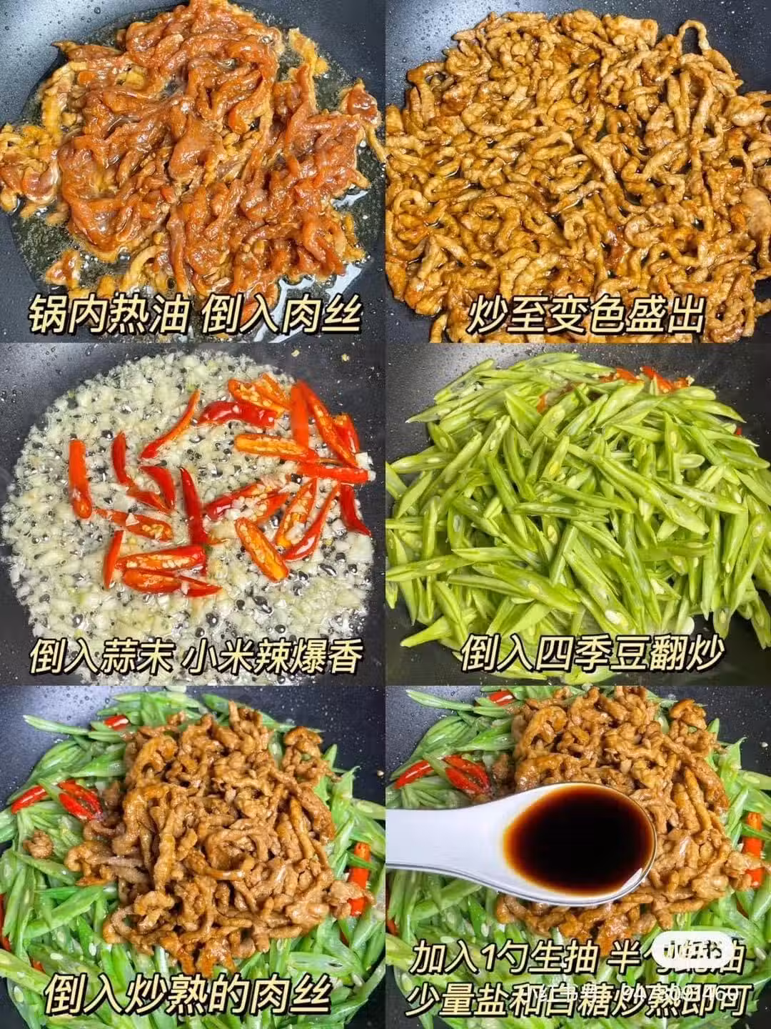 4⃣️倒入炒好的熟肉絲翻炒均勻