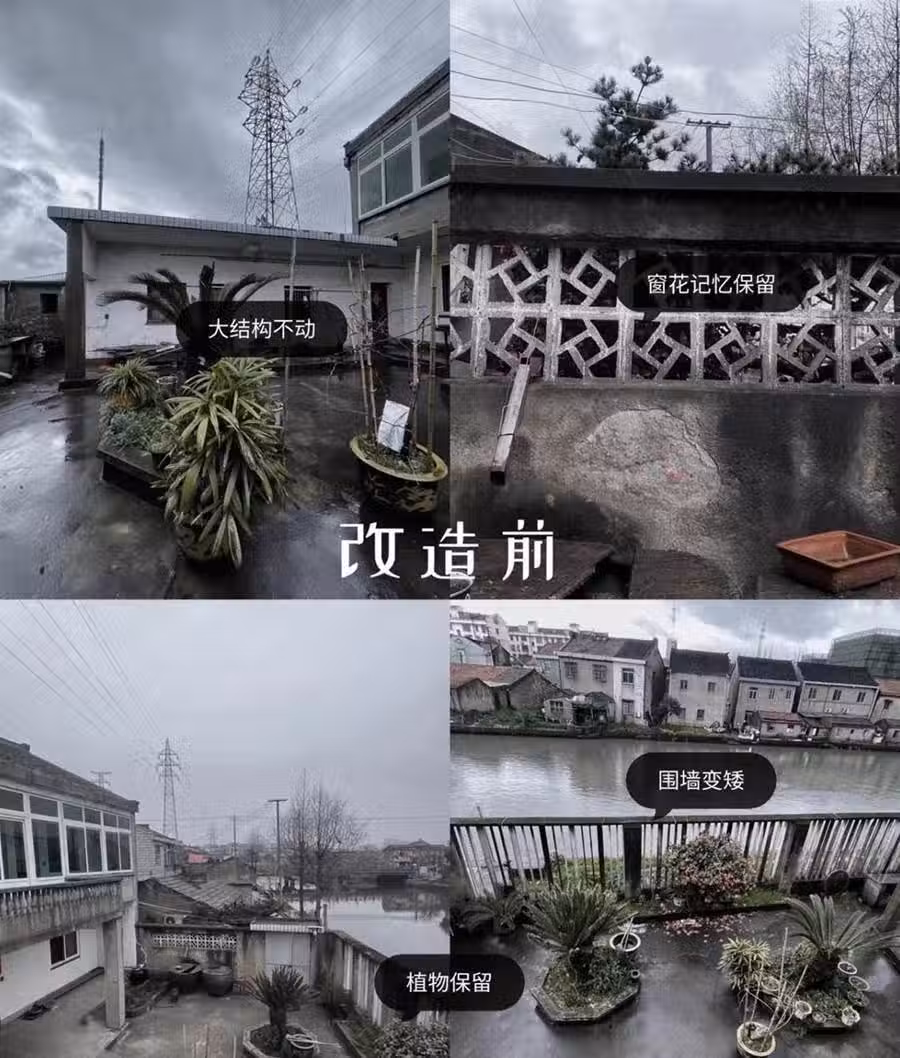 保留老宅原貌,加入現代元素。經過重新上色和修繕,房子煥然一新。外墻添加了紫花叢,鐵門改裝成質感木門,窗戶也更換成透明玻璃窗,增強了室內採光。