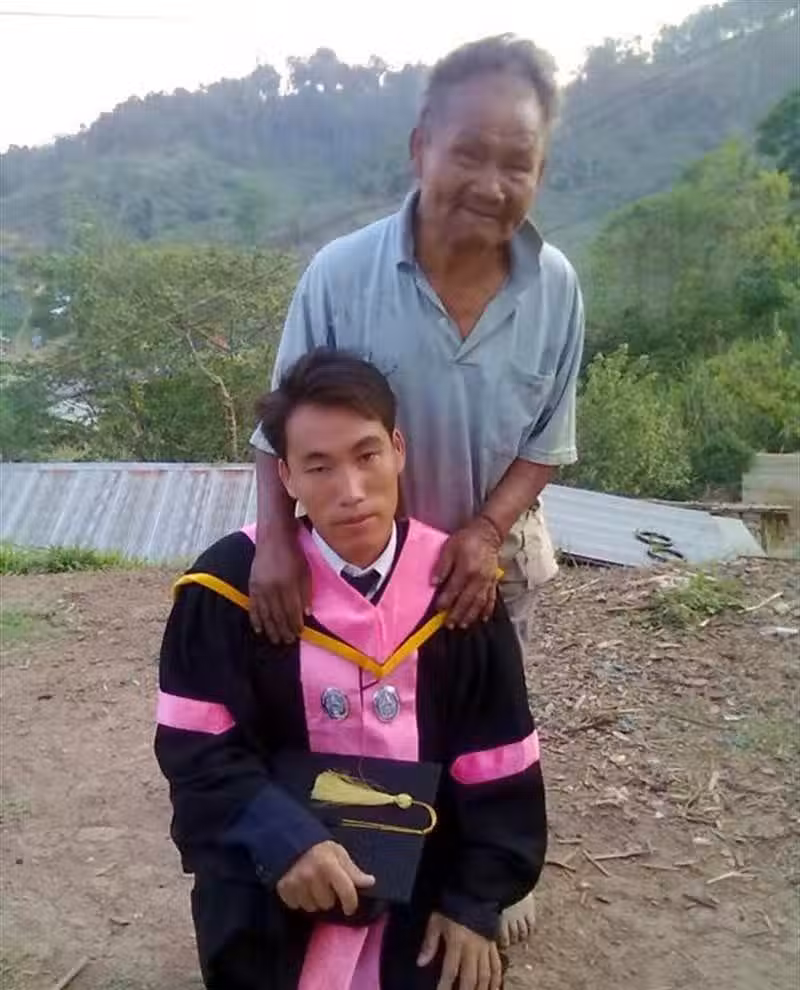 這名畢業生正是來自泰國的披索,他出生的同時,母親就不幸大出血,離開了這個世界。為了照顧兒子,即便內心十分痛苦,披索的爸爸仍振作起來,撐起了整個家。