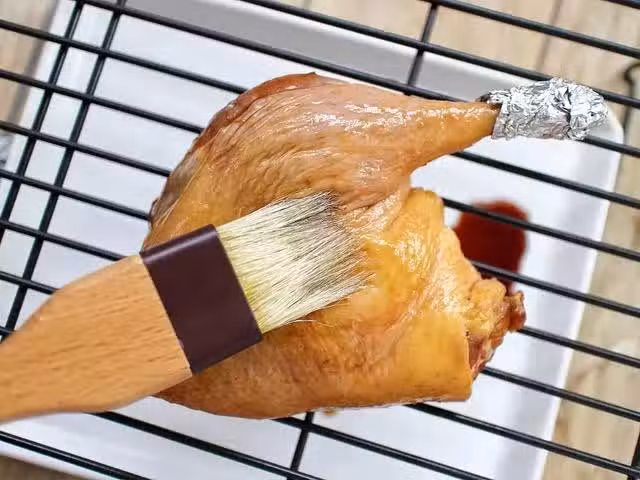 6、20分鐘後,取出鴨腿,再次刷上蜂蜜水,送入烤箱中層,上火150度,下火160度烤20分鐘