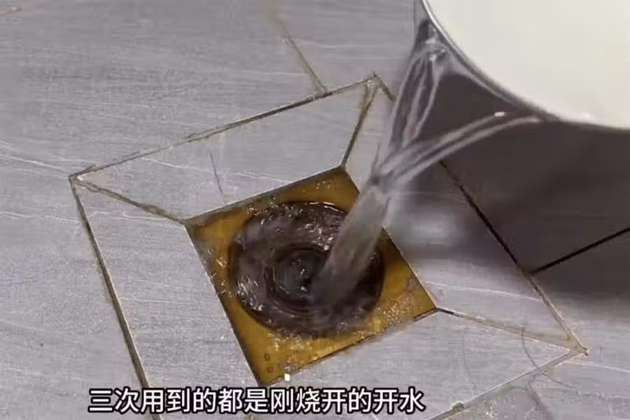 所以這是一個重點,大家一定要記住,如果是用涼水的話,沒有任何效果,經過最後一次用干凈的開水沖刷之後,這些溶液就會布滿整個下水道內壁,達到一個徹底清潔下水道的作用。