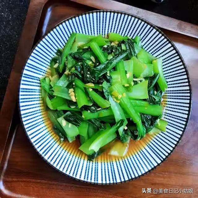 加入青菜翻炒至斷生,加鹽和雞精調味即可。