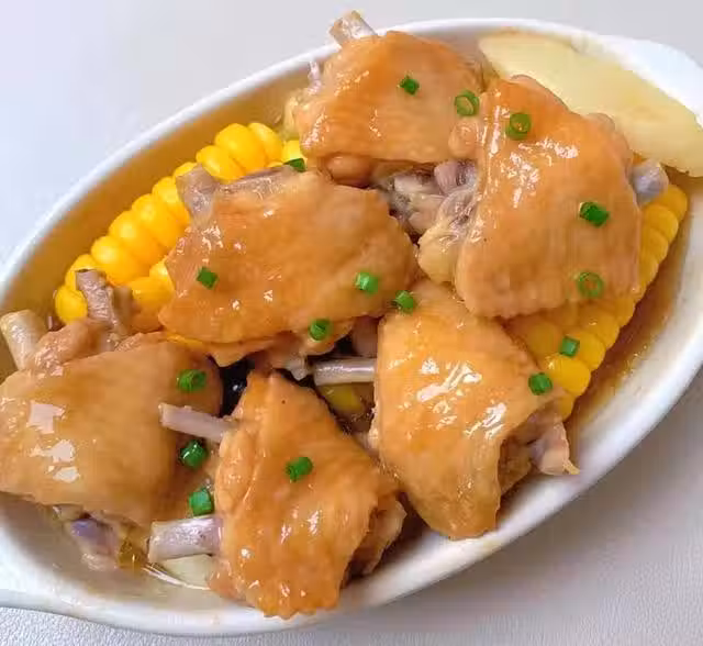 食材準備:雞翅,蔥段,薑絲,澱粉,蚝油,醬油,玉米,山藥等。