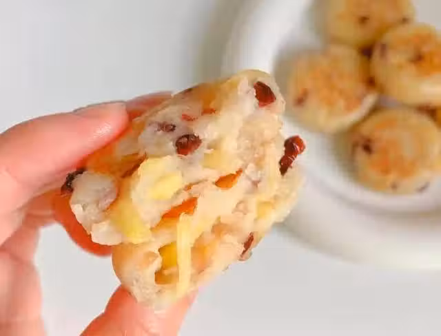 步驟四:然後平底鍋刷油,將山藥小餅放入鍋中,小火煎至兩面金黃,怕不熟的可以在鍋邊淋一點水,加蓋燜一下。