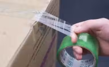在用膠帶粘貼完東西之後,我們用食指卡在膠帶的下面,大拇指則頂在膠帶正中間的位置。