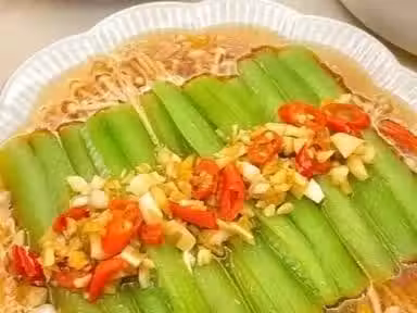 3.將蒜末汁淋到絲瓜上,蒸鍋蒸12分鐘即可。