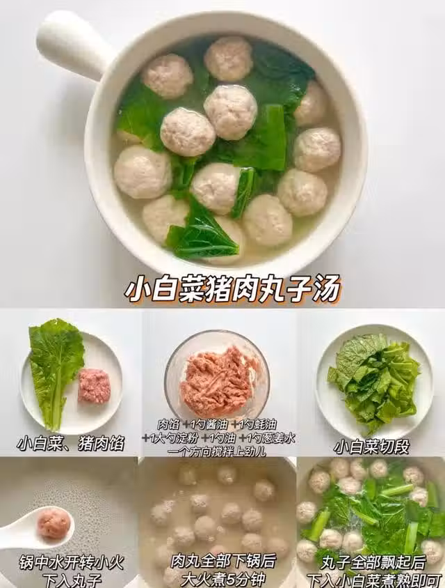 1.豬肉餡+1勺醬油+1勺蚝油+1大勺澱粉+1勺輔食油+1勺蔥姜水,一個方向攪拌上勁兒