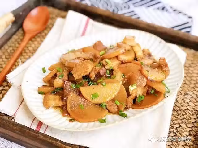 食材:白蘿蔔200克、五花肉200克、香蔥1根、生抽5毫升、白砂糖3克、蚝油5克