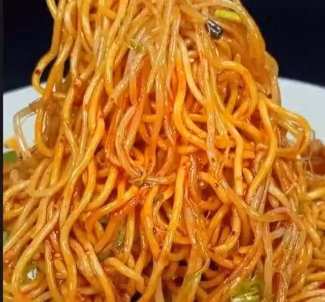 將25g花生油倒在一個大盆中備用。鍋中水燒開後下麵條,兩開後撈起放入油中,迅速將麵條和花生油一邊拌勻一邊在風扇前以挑高麵條並抖散的方式使其迅速降溫,這一步一定要快(可藉助空調出風口)避免麵條糊成一團,麵條徹底晾涼後即成為涼麵。