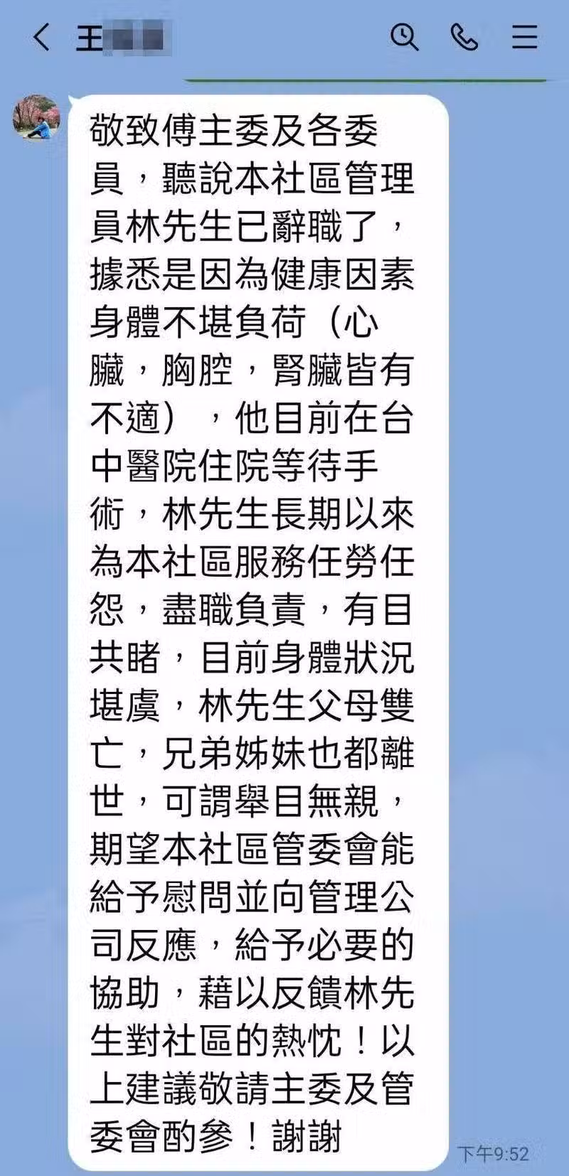 也非常感動,謝謝社區住戶對他的關懷與幫助。最後也祝福林伯伯的生活順利、身體健康!