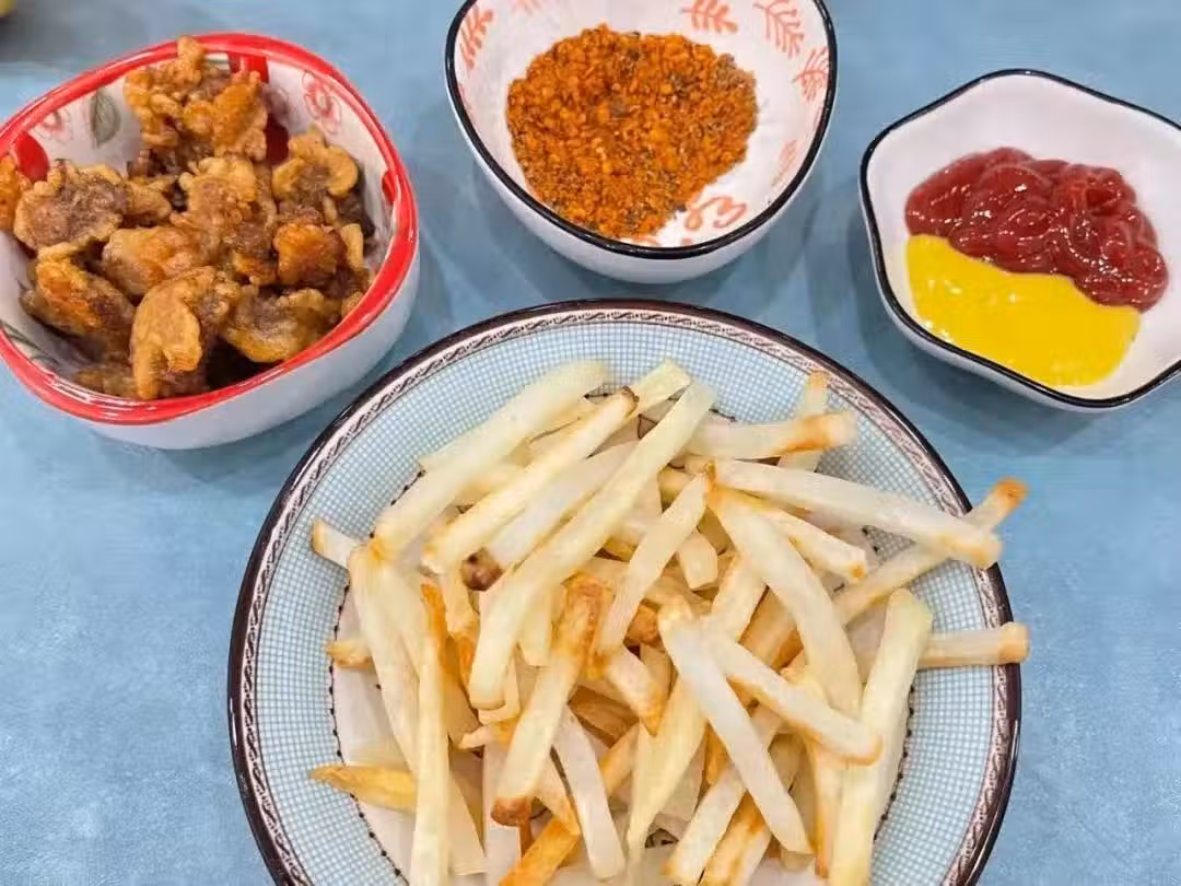 (半成品冷凍薯條:不用解凍,180度10分鐘,中途翻面。)