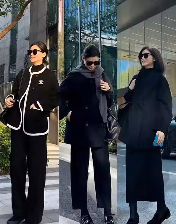 一身黑的穿搭看起來低調,但同時又極其的時髦有氣質,尤其是普通女性,可能日常生活中並不想搭配的太花哨。