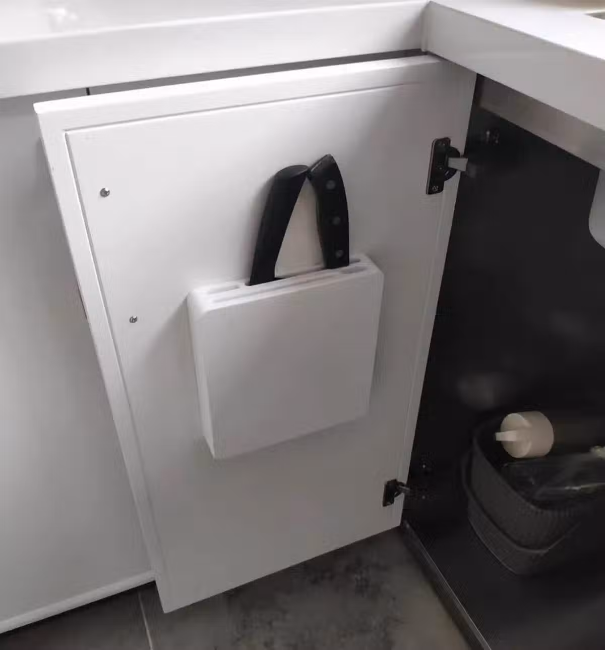 平時,我們櫥櫃都是關閉的,不僅可以遮擋灰塵和油煙,還能提升顏值。柜子門內側面位於櫥櫃的內部,平時看不到,在櫥櫃的門上貼一些掛鉤,用來掛東西也能增加很多容量,還很有創意。