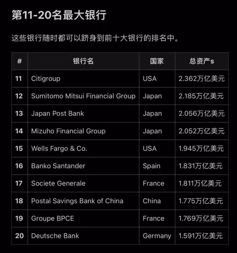 全球最有錢「10家銀行」, 第一名有25.87萬億資產
