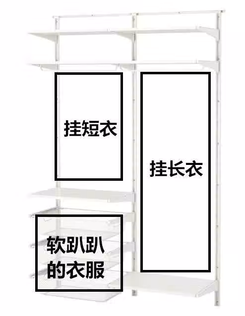但是這種方法有個缺點,就是全開放式看上去還是會顯得稍有些凌亂,則建議大家統一衣架顏色
