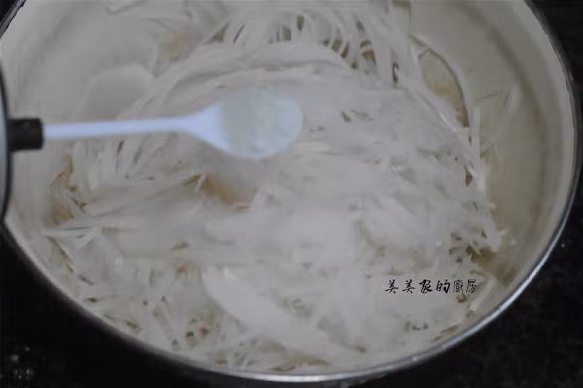 蘿卜絲會腌制出很多水,用力將水擠出來。