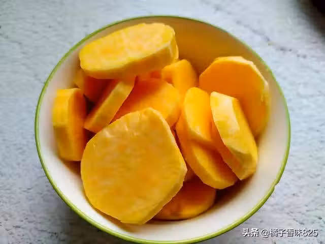 2、把蒸熟的紅薯取出來,用叉子或者勺子壓成紅薯泥,儘量壓得細緻一些;