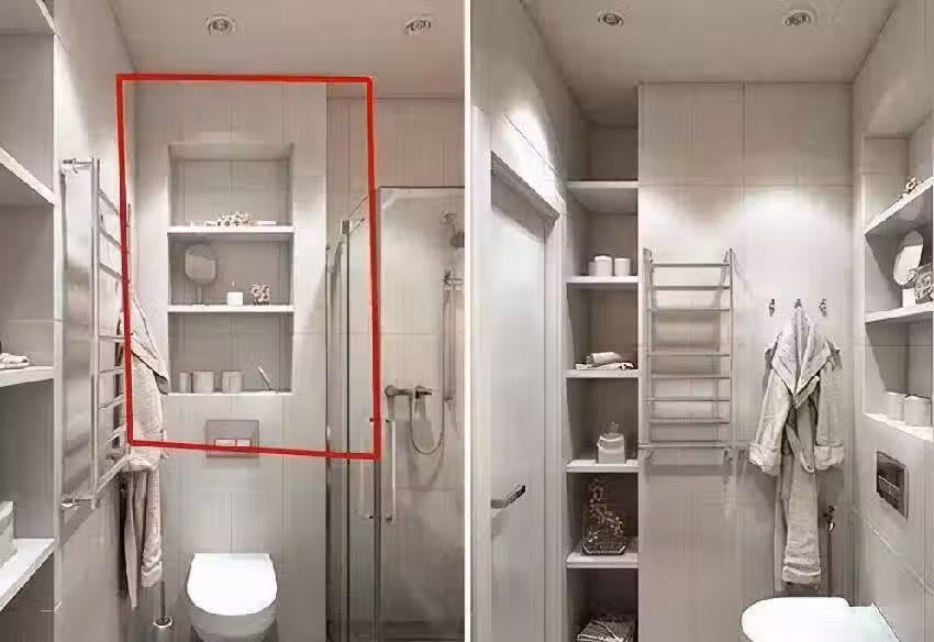 因為它直接在牆壁上挖了一個洞,並不像置物架是外掛在牆壁上的,這樣能大大利用衛生間的空間。