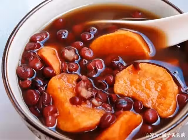 食材清單:紅糖(適量)、紅薯(1個)、紅豆(一小碗)。