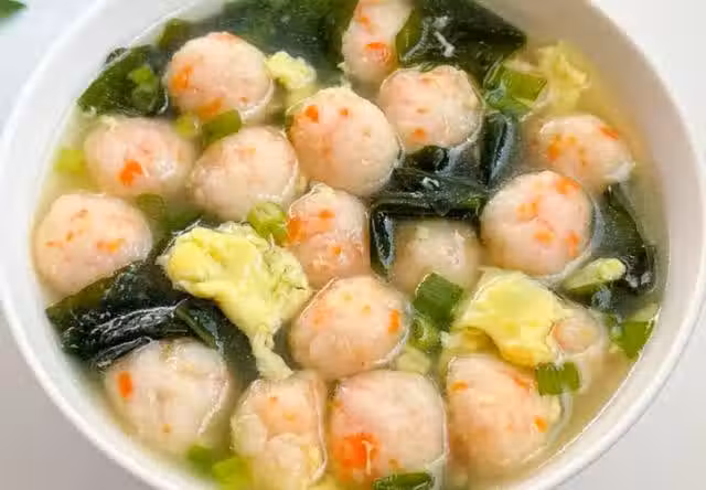 2、裙帶菜鱈魚蝦丸湯的做法: