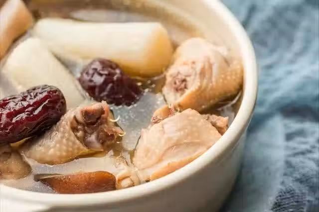 食材:雞肉、山藥、紅棗、枸杞、蔥姜、食鹽