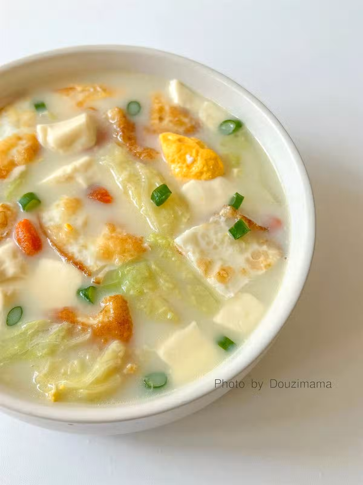 答應我一定要做這個白菜煎蛋豆腐湯!最近下雨天氣很冷,這個湯是寶寶點名要喝的!湯汁奶白、豆腐嫩滑、白菜鮮甜、還有吸飽湯汁的煎蛋,一口下去真的鮮掉眉毛~