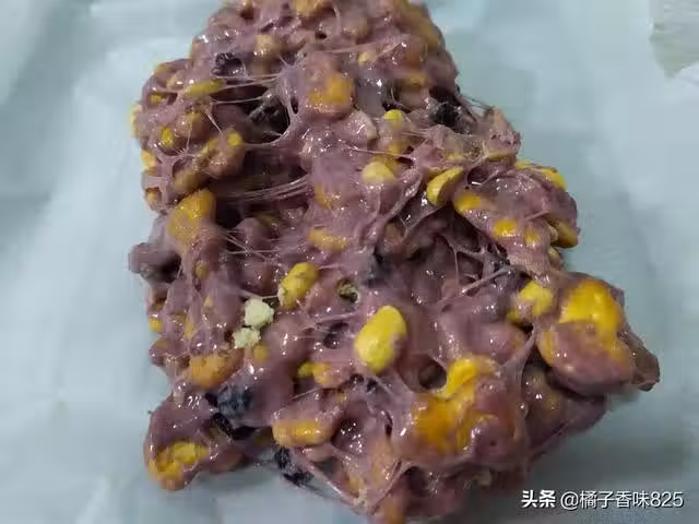 6.撒一層雪花粉,雪花粉的做法:一勺紫薯粉和一勺奶粉混合均勻,晾涼後放冰箱冷藏至變硬,取出來就可以切塊享用啦,真的超級好吃