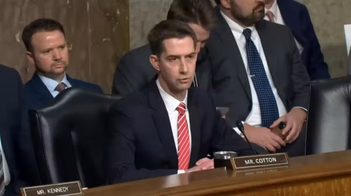 隨後,著名「反華議員」、阿肯色州共和黨籍參議員科頓便開始了其「拙劣表演」,開始咄咄逼人地反覆追問周受資的公民身份。眾所周知的是,周受資是新加坡人。