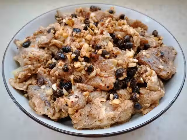 7、蓋上鍋蓋,開大火蒸30分鐘左右,時間就可以關火出鍋了,如果想要更加軟爛一點的,可以蒸久一點,把排骨端出來後撒上點蔥花點綴增香。