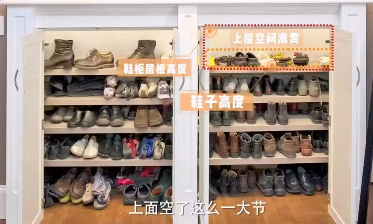 若是不想如此,女主人們不妨備一個雙層鞋托。一個鞋子的容量,直接放兩個。就算是不能全部放下鞋子,可能減少很多堆積在外的鞋子。門前留幾雙家人換洗的拖鞋即可,看著干凈又溫馨。