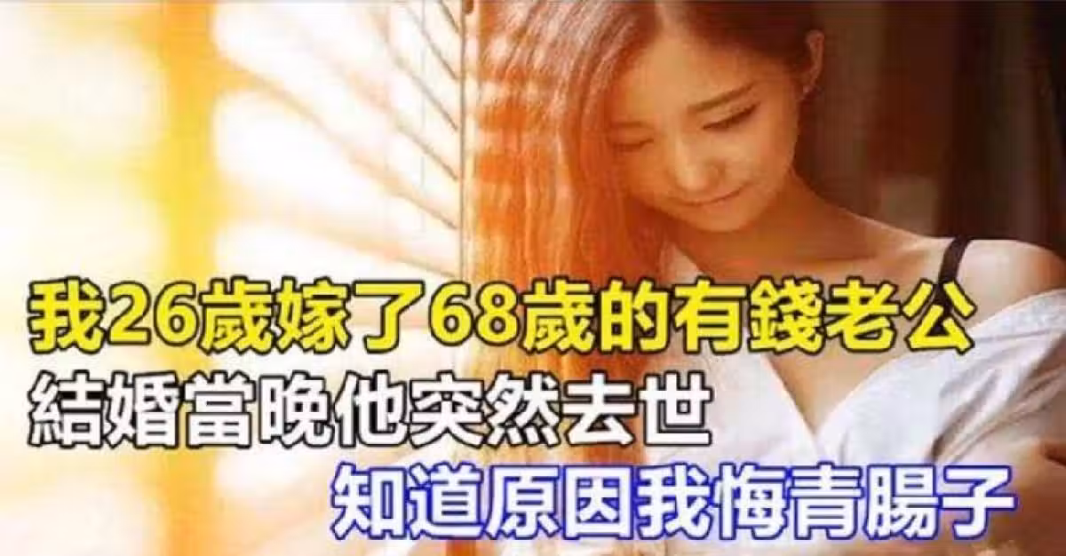 我26歲嫁了68歲的有錢老公,結婚當天晚上,看到穿著「睡衣」的我,丈夫竟然……我腸子都悔青了!
