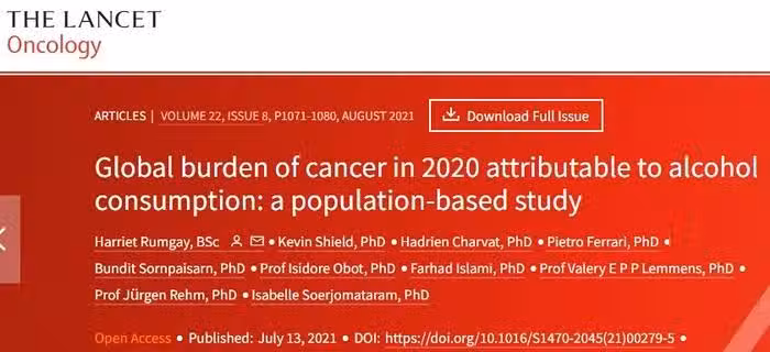 《柳葉刀》雜誌上的研究指出,每日飲酒20~60g,就屬於危險飲酒,與39.4%的癌症發生相關。