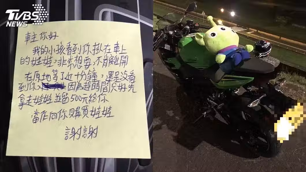 重機後座掛娃娃「家長留紙條拿走」:小孩想要!他急找人「說有留錢也沒看到」最後發展掀熱議