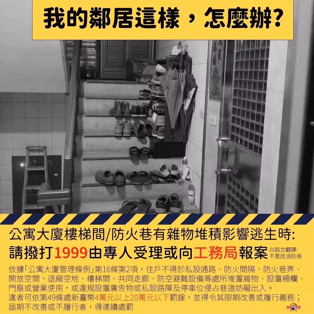 小編以前也都會把東西放在樓梯間耶...不過後來也是怕妨礙別人,全都收起來了,大家真的要做個好鄰居啊!