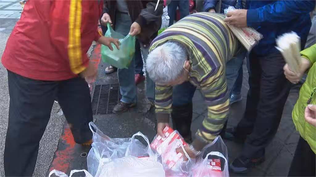 目前,台北市萬華龍山寺捷運站共派發了五百份控肉便當、1000個橘子、150顆包子。