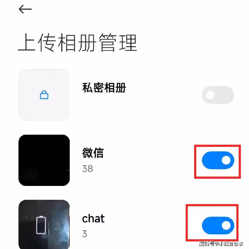 接著把同步開關打開,以及自動下載開關打開,打開之後,我們再次點擊上傳相冊管理然後我們選擇需要進行上傳的相冊,接著把開關打開,這樣就可以自動幫我們把這些相冊裡面的照片,自動同步到雲相冊了,萬一我們不小心刪除了照片,就可以快速通過雲相冊來找回了!