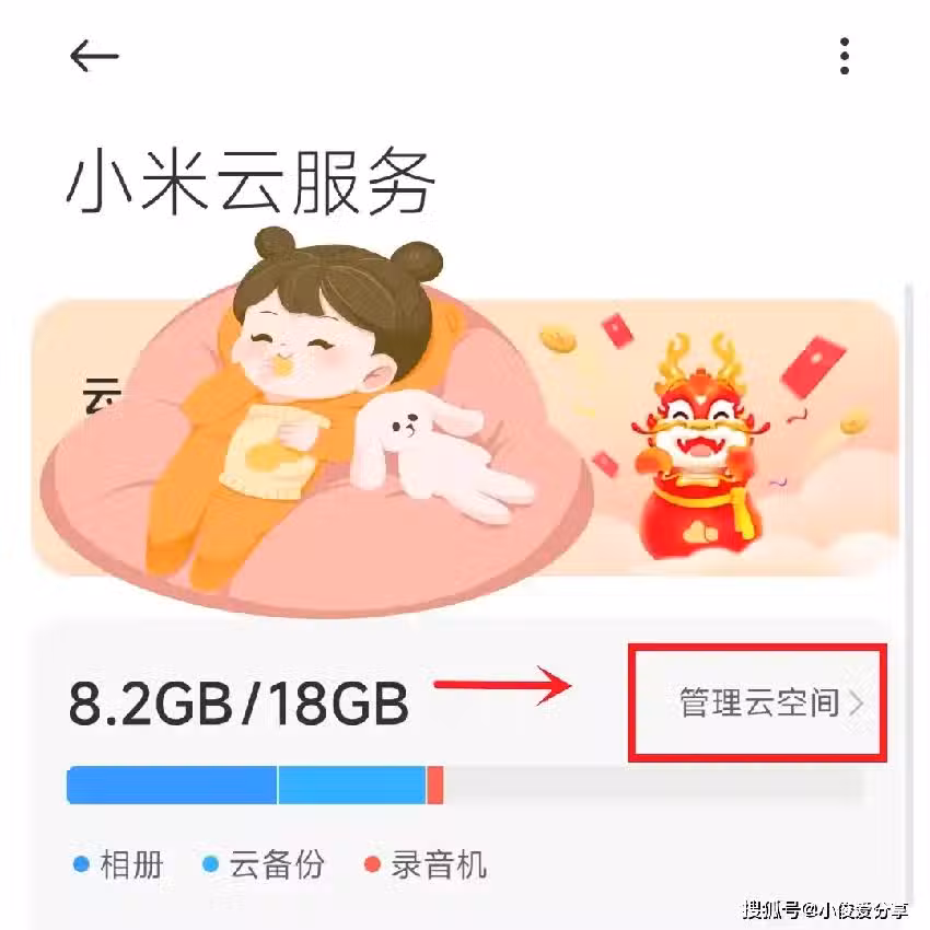 在雲服務裡面,我們點擊右邊的管理雲空間按鈕,將它打開