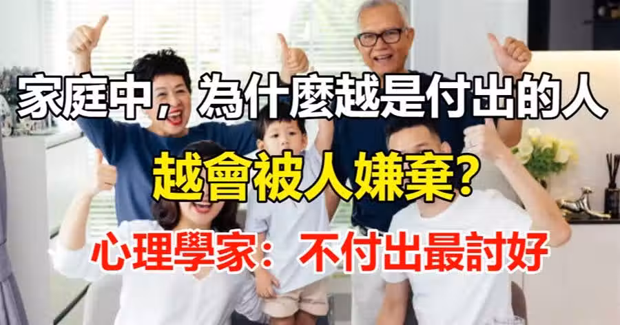 家庭中,為什麼越是付出的人,越會被人嫌棄?心理學家:不付出最討好💔