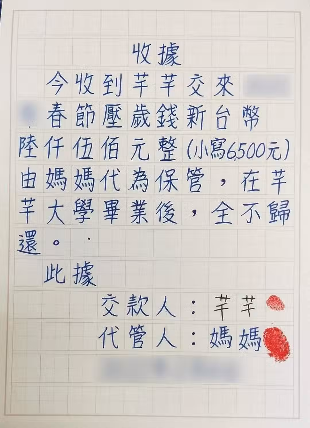 幫女兒保管紅包!媽媽代收紅包「跟女兒簽字畫押」 眼尖網友「揪字據藏1細節」超陷阱:薑還是老的辣